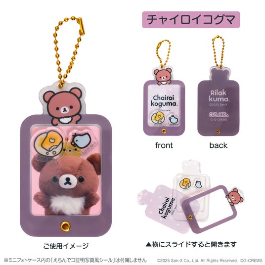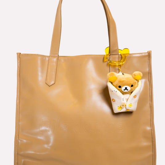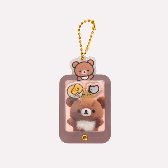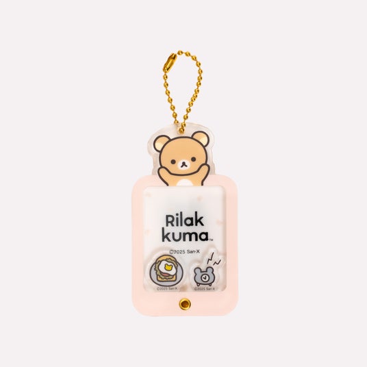 リラックマ型アクリルカラビナと落下防止シートベルト付きだから、持ち歩きにも♪