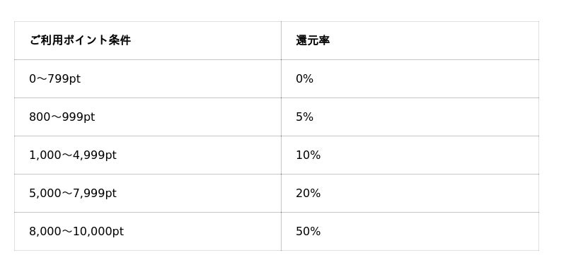 ・対象作品の合計消費ポイントに応じた還元率で当該ポイントを還元します。