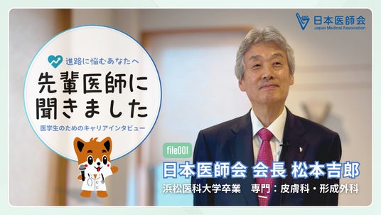 日本医師会(会長:松本吉郎)はこのほど、動画「進路に悩むあなたへ 先輩医師に聞きました 医学生のためのキャリアインタビュー」を制作し、9月19日に公式YouTubeチャンネルで公開しました。