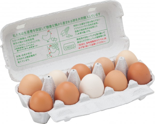 結果、黄身の色が白っぽく。現在でもエサに輸入トウモロコシを一部配合していますが、遺伝子組み換えしていないものを与えています」