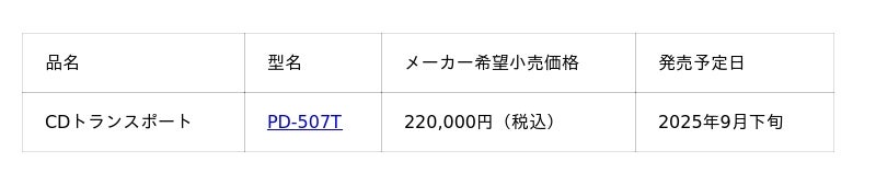 TEAC(ティアック)は、Reference 500シリーズのCDトランスポート、PD-507Tを発売いたします。