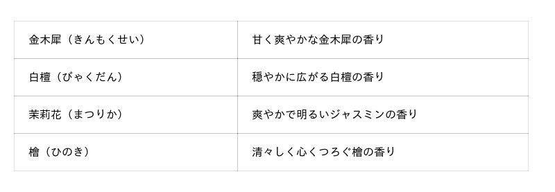 香りは調香師によって創香された、素材そのものを感じるシングルノート。奥行きのある本格的な香りです。
