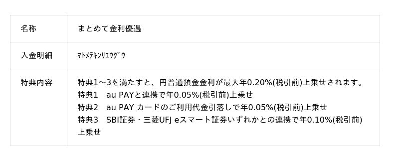~SBI証券との連携でauじぶん銀行の円普通預金金利を優遇~