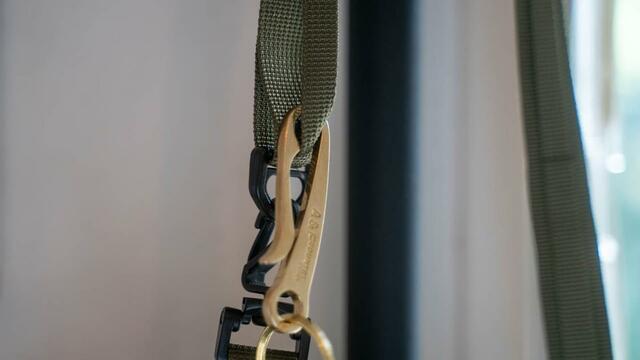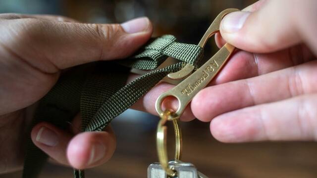 これまで、吊るす系のキーホルダーとしてはカラビナを使っていたんですが、カラビナは引っ掛けたものを外すときに「開ける」動作が必要なんですよね。