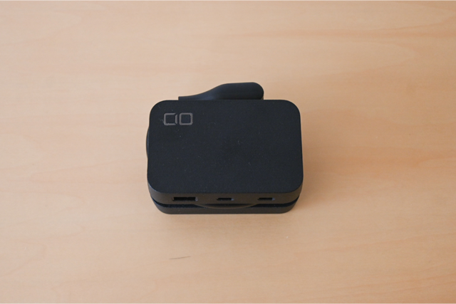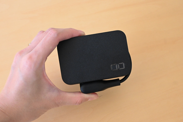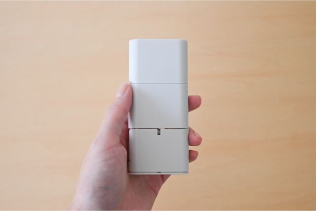 なんとこの電源タップ、高さ9cm×幅6cm×厚み4.12cmとポーチにも入るほどコンパクトなんです。