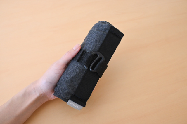 使い終わったら空気を抜いてくるくる丸めれば手のひらサイズに。