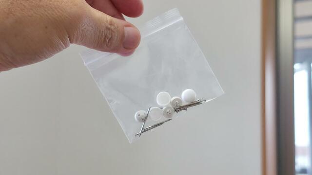 今回は石膏ボード壁に設置するので、付属の専用ピンを使います。