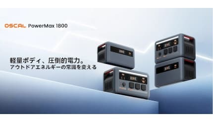 香港のOSCALは10月末に、大容量・高出力・軽量設計を兼ね備え、アウトドアや旅行などで幅広く活躍するポータブル電源「Oscal PowerMax 1800」の、日本国内での発売を予定している。