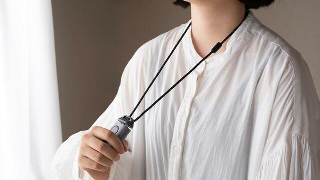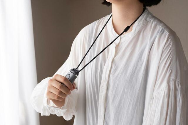 首にかけるだけで良いので手ぶらで歩けるし、大袈裟な感じもしません。