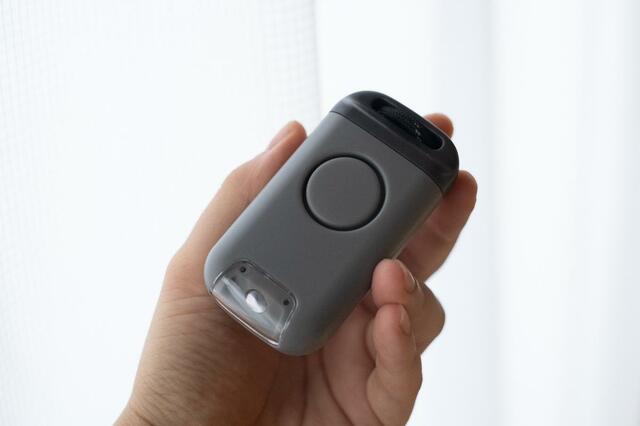 これはライトを持ち歩くついでに防犯ブザーにもなってくれるので、いざというときにも安心です。本体を掴んでぎゅっと引っ張るだけで音が鳴らせます。
