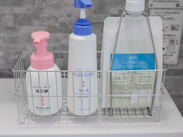左から、ビオレ ザフェイス 泡洗顔料、シーブリーズ ボディシャンプー、THE ANSWER シャンプー、melt モイストシャンプー
