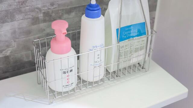 マグネットで壁に貼るシャンプーボトル収納もありますが、このタイプで床にシャンプーをぶちまけた経験があり……。