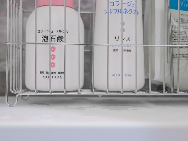 シャンプーボトルがぬめる問題を解決してくれた無印良品の「ステンレスボトルラック」。
