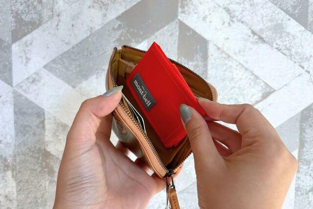 持っている財布のカードポケットにはさすがに入りませんでしたが、隙間になら、この通りすっぽり入ります。