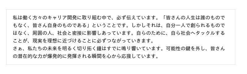 当協会は、個人の主体的なキャリア開発を支援する団体として、学生の挑戦や成長を後押しすることを使命としています。栗原は最終審査員として、学生の創造力や実行力を評価し、挑戦の場をさらに価値あるものにする役割を担います。