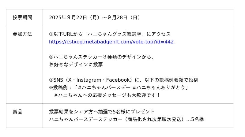 - 投票期間:2025年9月22日(月)~9月28日(日)/結果は公式発表にて案内 -
