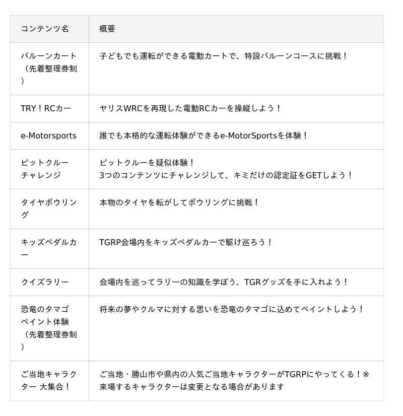 <「TOYOTA GAZOO Racing PARK in TGR ラリーチャレンジRd.10 恐竜勝山」概要>