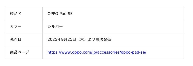 革新的なデザインとテクノロジーで業界をリードするスマートデバイスブランドOPPOは、タブレット新製品「OPPO Pad SE(オッポ パッド エスイー)」を一部販売チャネルにて9月25日(木)より順次販売を開始いたします。