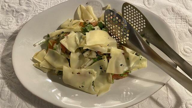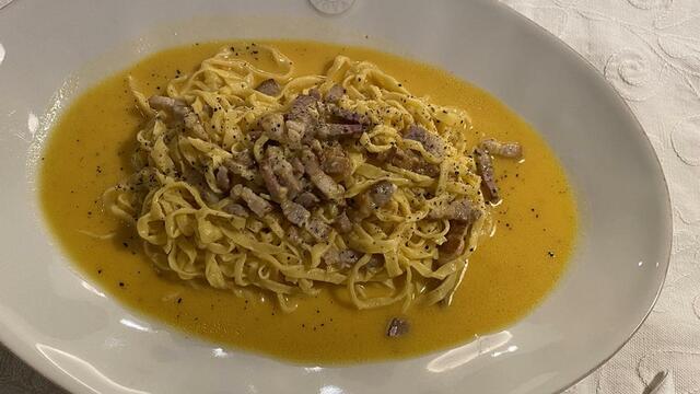 手打ちパスタのカルボナーラ(ちょっとソースが緩すぎた)。パスタもベーコンも自家製です。おいしいおいしい。