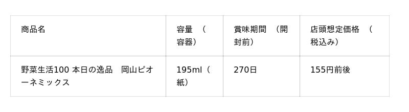 カゴメ株式会社(社長:山口聡、本社:愛知県名古屋市)は、「野菜生活100 本日の逸品 岡山ピオーネミックス」を2025年10月21日(火)から12月下旬まで期間限定にて全国で発売いたします。(在庫がなくなり次第、販売終了)