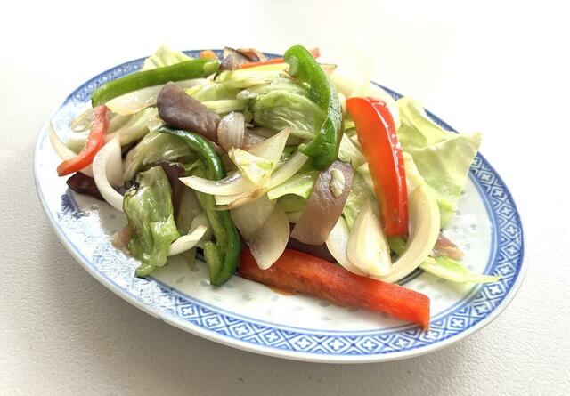 手頃なお値段のフライパンで炒めると、野菜だけの場合、なんとなく味気ないなと感じていました。