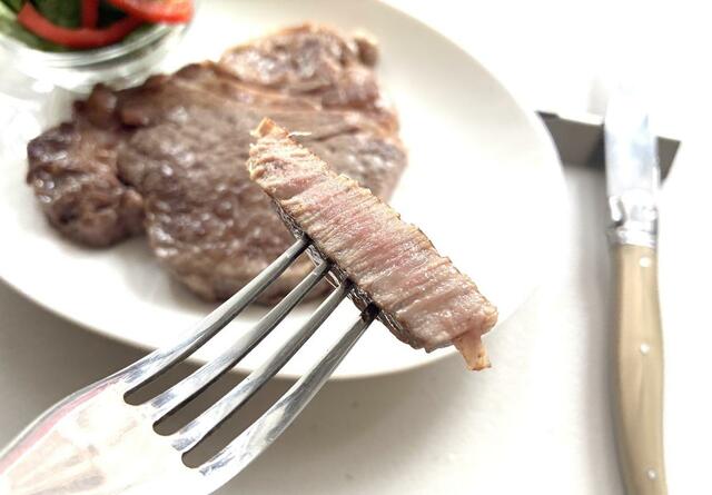 スーパーで値下げされていたお手頃のステーキ肉も、このフライパンで焼くとお店で食べるような美味しさに。