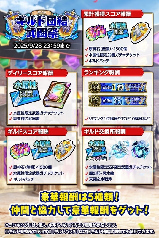 ギルドメンバーと力を合わせて豪華報酬を獲得するイベント「ギルド団結武闘祭」が開催!