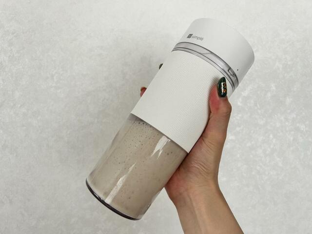 水や牛乳に粉末を入れるだけだとダマが残りやすいプロテインも、このブレンダーを使えばしっかりなめらかに。