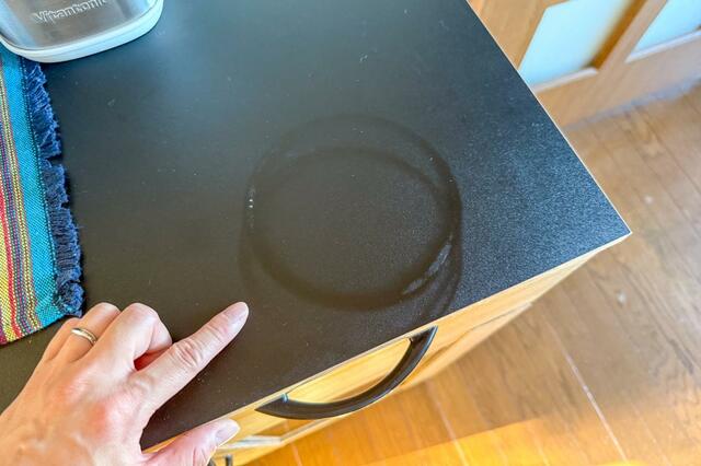先日、同居人が誤って熱々のお鍋をそのまま天板に置いてしまったことで、台が溶けて跡が残ってしまいました(その瞬間、思わず、私は叫びました……)。