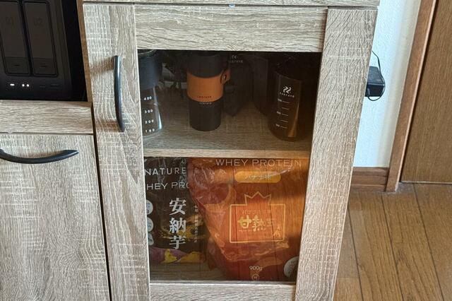 我が家では、Wi-Fiルーターはもちろん、ダッチオーブンやプロテインなど、ごちゃつく色々をすっきり収納することができました。