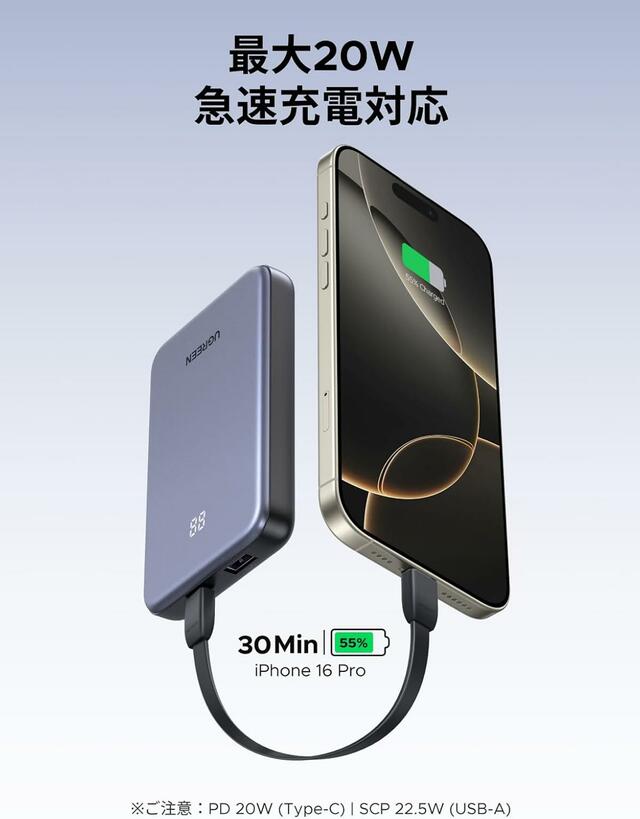 本日2025年9月23日は、コンパクトながら2台同時に充電できるUGRERN(ユーグリーン)の「10000mAh 2way 急速充電モバイルバッテリー」がお得に登場しています。
