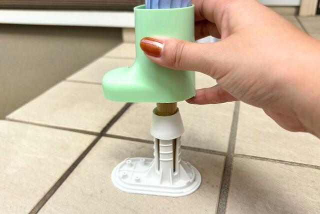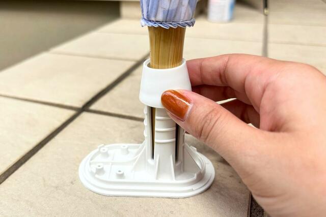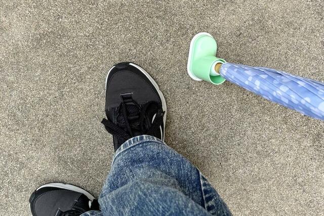 注意点は、細い石突の傘には使えないこと。カサアシが対応できるのは、石突の太さが約1.2〜1.7cmの傘のみです。
