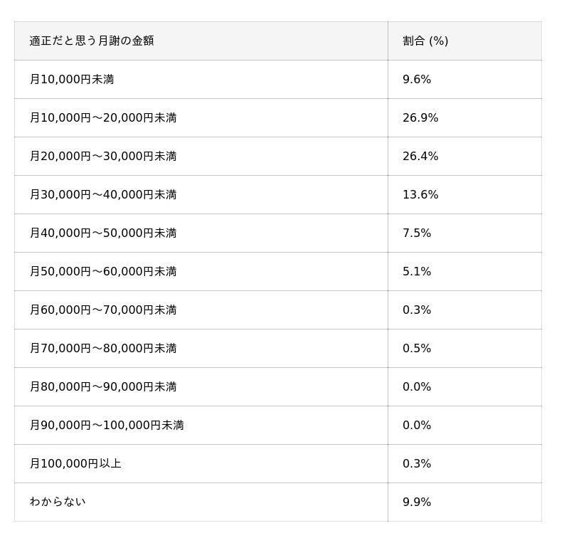 この傾向は、より価格帯を下げた「2万円未満」で比較するとさらに顕著になります。実際に支払っていた家庭は25.8%であるのに対し、2万円未満を適正だと考える家庭は36.5%と、こちらも10%以上の差が開いています。