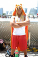 毎年肉体美あふれる女装コスプレを披露していますが、今回は『天元突破グレンラガン』よりヨーコ・リットナーのコスプレを披露。