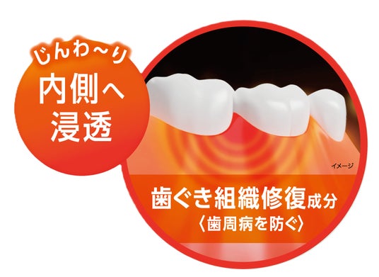 歯ぐき組織修復成分ALCA*1 が歯ぐきの奥までめぐり届き、じんわ~り内側へ浸透、歯周病*4 予防