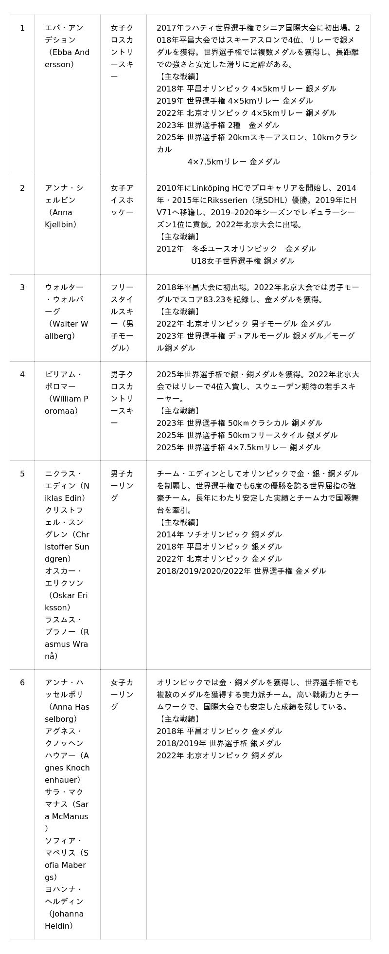 スウェーデンオリンピック委員会選手 ※競技種目別