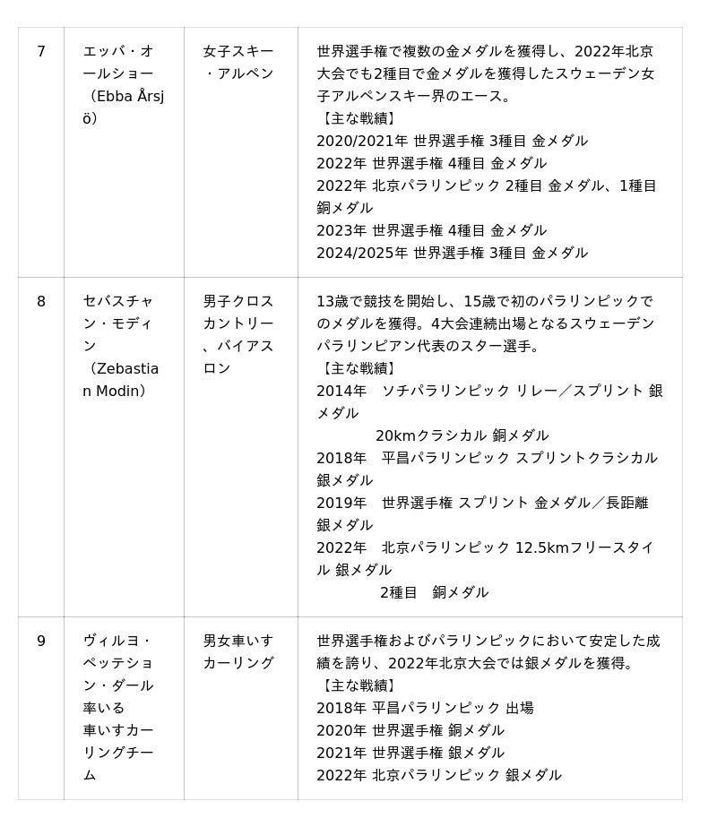 スウェーデンパラリンピック委員会選手 ※競技種目別