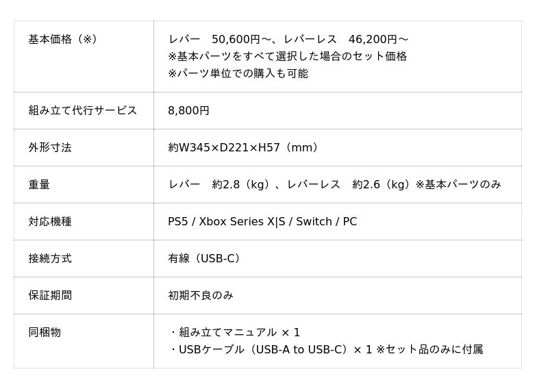 レバーモデルはセット価格50,600円~、レバーレスモデルはセット価格46,200円~となります。(※本体を構成する基本パーツを揃えた場合のセット価格。)