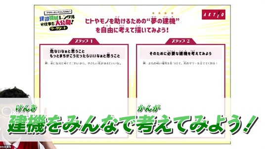 今回のイベントは、キッズウィークエンドとのコラボレーション企画として実現したもので、子どもたちと保護者を合わせて約290名がオンラインで参加しました。子どもたちは、普段なかなか触れることのない建設業界に接し、実際に現場で活躍するさまざまな重機などの建設機械について学びました。授業では、クイズ形式で建設機械が普段どのように使われているのかの紹介や、自分で新しい建設機械を考えてみようといったワークを実施し、子どもたちが建設機械の役割を広い視野で楽しく学べる授業内容となりました。また、建設機械がどのようにレンタルされ、社会インフラの整備や暮らしを支える基盤づくりに役立っているのかを理解する良い機会になりました。