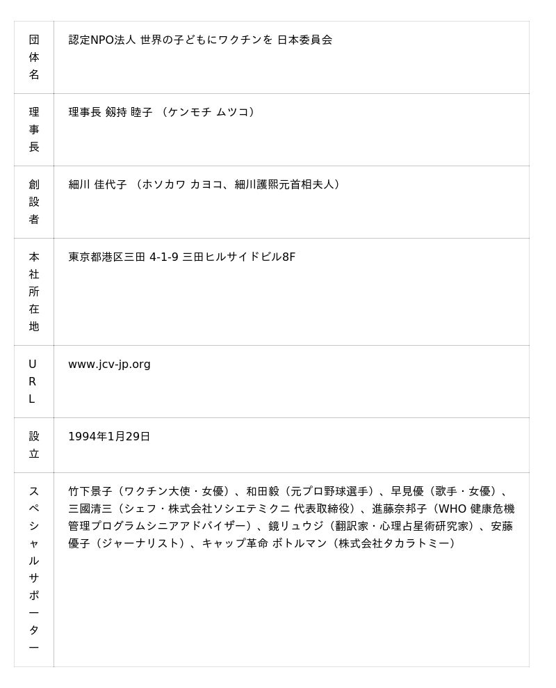 UNICEFと協力して途上国の子どもたちにポリオ、はしか、結核などのワクチンを届け、命と未来を守る子どもワクチン支援を行う「認定NPO法人 世界の子どもにワクチンを 日本委員会」(以下JCV)は、2025年9月27日(土)~9月28日(日)に開催される国内最大級の国際協力イベント「グローバルフェスタJAPAN2025」に出展いたします。当日はブースにて、誰もが気軽に国際協力やチャリティーに参加できる企画を実施いたします。皆さま、この週末は「グローバルフェスタJAPAN2025」へお越しいただき、JCVブース(ブース番号D043)にお立ち寄りください。