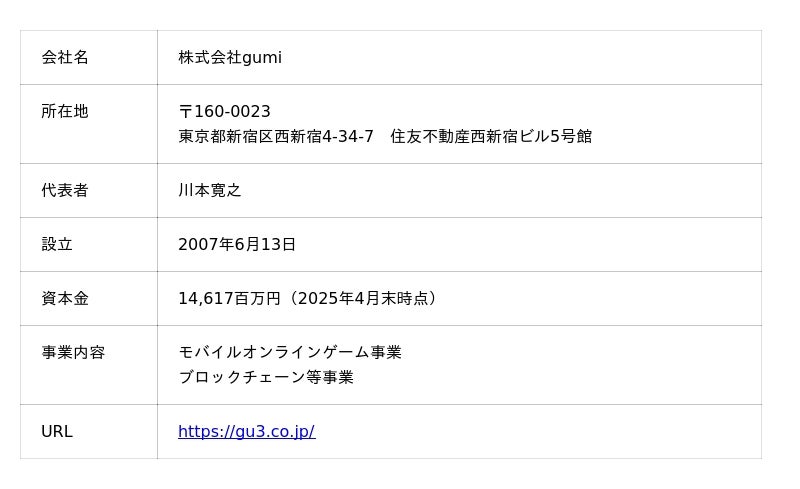 gumiは、「Wow the World! すべての人々に感動を」をMissionに掲げ、モバイルオンラインゲーム事業とブロックチェーン等事業の二つの事業を展開しています。モバイルオンラインゲーム事業では、『当社ゲームエンジン×IP』を軸とした収益性の高いタイトル開発を推進するとともに、開発受託にも注力しております。ブロックチェーン等事業では、ブロックチェーンゲーム等のコンテンツ開発、暗号資産を基盤にしたプラットフォーム構築、有力ブロックチェーンのノード運営、グローバルにおけるファンド投資等を行っております。