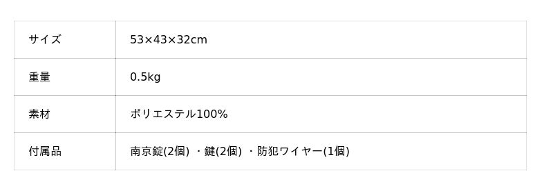 本製品には設置時に使用するワイヤーを1本と施錠用の南京錠を2個付属しています。付属のワイヤーをドアノブや柱に固定し、南京錠で施錠することで荷物の盗難を防ぐことができます。