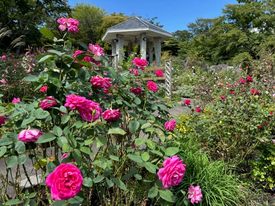 箱根強羅公園では、例年より早く園内のローズガーデンで秋バラが開花し、秋の訪れを告げています。例年10月上旬ごろから開花する園内のローズガーデンですが、春先から夏にかけての気温が高かったため一足先に開花し、11月上旬ごろまでお楽しみいただける予定です。