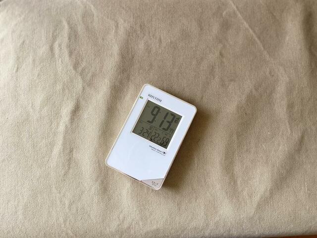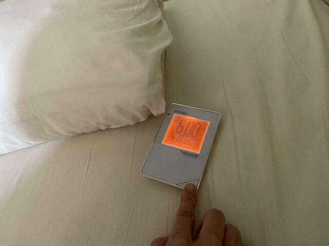 この薄さを活かして、いつも寝る前に枕の下にインします。下に目覚まし時計が入っていることなど忘れるくらい、違和感なし。