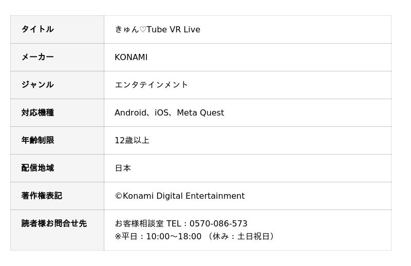 株式会社コナミデジタルエンタテインメントは、 VR技術を活用した新サービス『きゅん(ハート)Tube VR Live』のテスト配信を、9月25日(木)より開催される「東京ゲームショウ2025」から10月5日(日)までの期間限定で実施いたします。