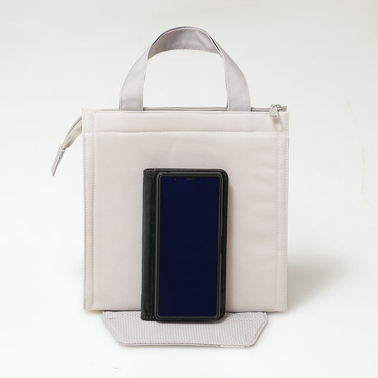 スマホスタンド付保冷ランチバッグ自立するバッグがスマホをしっかり支えます(すべり止め付)。スマホサイズの制約なしで、サイズを気にせず使えます。デスク(テーブル)にランチバッグを置くことで、周りから見えづらい環境をつくり、自分の世界に没頭(集中)することができます。