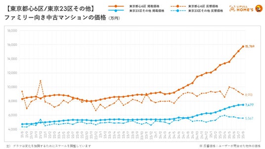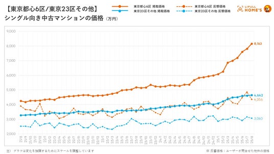 シングル・ファミリーともに首都圏・近畿圏で過去最高価格を更新東京都心6区のファミリー向きは1年で1.5倍以上の価格に
