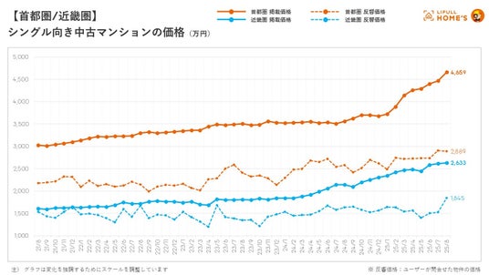 シングル向き・首都圏、近畿圏で計測開始以降の過去最高掲載価格を更新