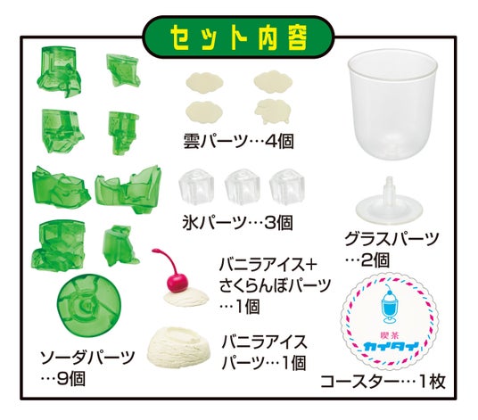 ■セット内容:ソーダパーツ・・・9個、雲パーツ・・・4個、氷パーツ・・・3個、バニラアイスパーツ・・・1個