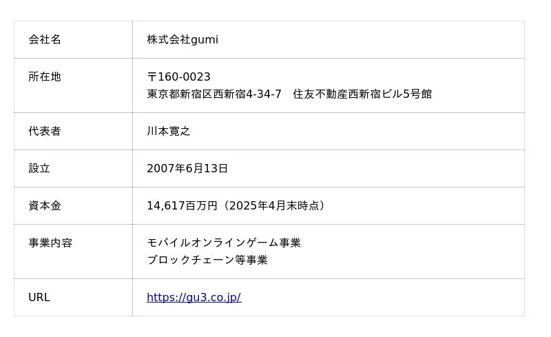 gumiは、「Wow the World! すべての人々に感動を」をMissionに掲げ、モバイルオンラインゲーム事業とブロックチェーン等事業の二つの事業を展開しています。モバイルオンラインゲーム事業では、『当社ゲームエンジン×IP』を軸とした収益性の高いタイトル開発を推進するとともに、開発受託にも注力しております。ブロックチェーン等事業では、ブロックチェーンゲーム等のコンテンツ開発、暗号資産を基盤にしたプラットフォーム構築、有力ブロックチェーンのノード運営、グローバルにおけるファンド投資等を行っております。